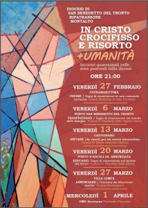 Per la Quaresima 2015 la diocesi di San Benedetto del Tronto-Ripatransone-Montalto propone un ciclo di incontri nelle zone pastorali della diocesi. Un incontro da vivere nelle vicarie, un “convenire” ogni settimana, in una diversa vicaria, per camminare insieme verso la Pasqua e farsi attenti alle periferie esistenziali. Gli incontri saranno preparati insieme dai presbiteri... Continua »