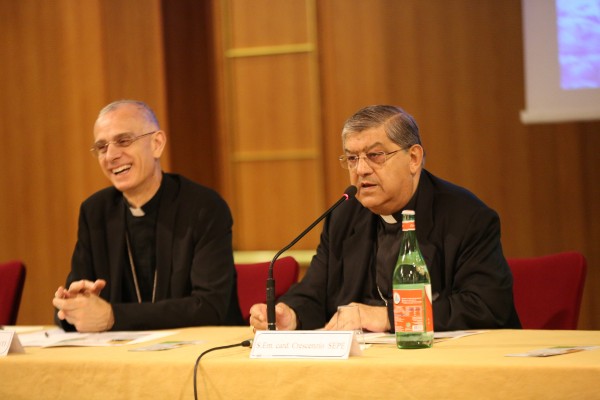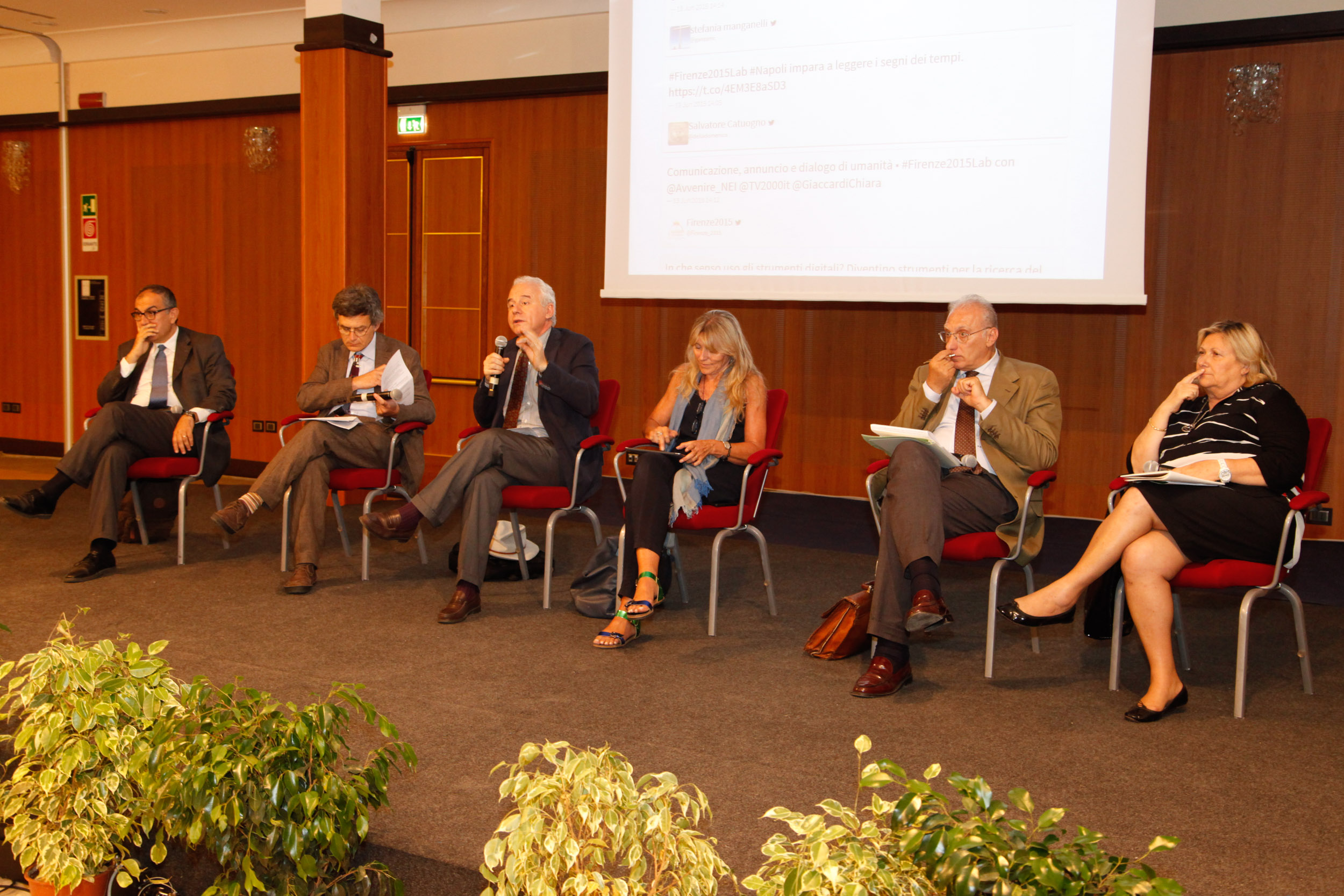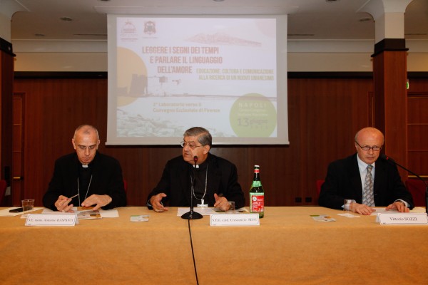 «Napoli è una tappa importante per la riflessione verso Firenze 2015: una tappa importante sia per il Sud sia perché si parla di tematiche fondamentali per qualsiasi progetto di evangelizzazione». Il cardinale arcivescovo di Napoli Crescenzio Sepe e mons. Antonino Raspanti, vescovo di Acireale, vicepresidente per il Sud del Comitato preparatorio del Convegno e presidente della Commissione episcopale per la cultura e le comunicazioni sociali, hanno accolto i circa duecento partecipanti al Laboratorio di Napoli con queste parole, antipasto di una giornata in cui si sono susseguite quattro tavole rotonde sui temi della scuola, dell’università, della comunicazione e dello spettacolo.
