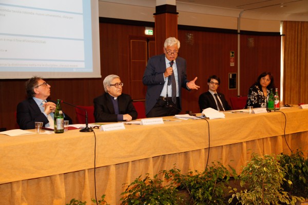 La seconda tavola rotonda ha offerto spunti interessanti sul tema del “Nuovo umanesimo, sfida per l’università e la ricerca”. Sollecitati dal moderatore Luigi Fusco Girard, hanno partecipato Lucio D’Alessandro dell’Università Sant’Orsola Benincasa («Ripercorriamo la storia dell’università, nata nel Medioevo dall’esperienza dei clerici vagantes, quindi come scuola del sapere itinerante, e poi si è istituzionalizzata. Ora siamo di fronte alla cultura digitale nascosta nei cellulari e negli i-pad, dove ci sono saperi che possiamo interrogare»), Anna Papa dell’Università Parthenope («Mi occupo di diritto e diritti, trattando dell’essere umano come persona oggi compresa come uomo digitale. Il nativo digitale corre un rischio importante, ovvero pensare che tutto ciò che legge in internet abbia pari valore. Noi dobbiamo insegnare a scegliere quei contenuti web frutto di un sapere ragionato e critico»), padre Domenico Marafioti della Pontificia Facoltà Teologia dell’Italia Meridionale («Il nuovo umanesimo deve avere amore per l’intelligenza e la ragione, che sono gli elementi di dialogo che ci consentono di incontrare tutti progrendendo verso la verità, riconoscendo e correggendo i propri errori») e Paolo Baroni, presidente nazionale Fuci («Come federazione di universitari non ci accontentiamo d ascoltare le lezioni negli atenei che frequentiamo, ma ci piace chiedere ai docenti di entrare in relazione con noi. A maggio ci siamo incontrati a Catania discutendo di nuovo umanesimo, cercando di leggere i segni dei tempi. Oggi tra i giovani si ripete spesso la parola esperienza e molto meno quella di vissuto o sentimento»).